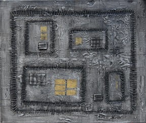 Ο Χρυσόστομος Μουσμουλίδης φιλοτεχνεί τις δικές του κιβωτούς θραυσμάτων στιγμών, γεμάτες ευαισθησία, χρησιμοποιώντας καμβάδες και τελάρα παλαιότερων έργων του. Έργα - μάρτυρες του παλαιότερου εαυτού του τα οποία συνθέτει (τα ράβει) μεταξύ τους, δημιουργώντας έργα που κρύβουν μέσα τους πολλά ακόμη παλαιότερα. Σε ορισμένα από αυτά, πίσω από τις έντονες ραφές - μπαλώματα ενός εαυτού και ενός παρελθόντος χρόνου που δημιουργεί πληγές, των οποίων την ίαση ζητά εναγωνίως, κρύβονται ποιήματα, καταθέσεις ψυχής. Κάθε έργο είναι μία βουβή κραυγή αγωνίας και ένα αποκούμπι του καλλιτέχνη. Αμφισβητώντας όλες τις όψεις της καθημερινότητας και της ζωής, των χρηστικών αντικειμένων και των ανθρώπινων συνηθειών δεκαετιών, βλέπει με παρθένο βλέμμα κάθε αντικείμενο που τον περιβάλλει και το προσαρμόζει στις μοναχικές, κατ’ επιλογήν και κατ’ εξακολούθηση, έξεις του.