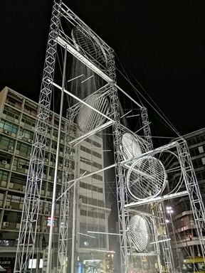 Το μοναδικό στο είδος του υδροκινητικής λειτουργίας γλυπτό δημιουργήθηκε το 2001, έχει ύψος 15 μέτρα και έχει γίνει από ανοξείδωτο χάλυβα. Για πρώτη φορά παρουσιάστηκε στην Μπιενάλε της Βενετίας το 2001 και το ίδιο έτος εγκαταστάθηκε στην Πλατεία Ομονοίας.