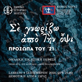Το Σάββατο 4 Σεπτεμβρίου 2021 στις 21:00 εγκαινιάζεται στη Δημοτική Αγορά της Ύδρας η έκθεση «Σέ γνωρίζω ἀπό τήν Ὄψι: Πρόσωπα του ’21» σε διοργάνωση του Εθνικού Ιστορικού Μουσείου και του Δήμου Ύδρας και επιμέλεια Ίριδας Κρητικού και Ιφιγένειας Βογιατζή. Η έκθεση παρουσιάζεται στην Ύδρα στο πλαίσιο των επετειακών εκδηλώσεων του Εθνικού Ιστορικού Μουσείου και του Δήμου Ύδρας για τα 200 χρόνια από την έναρξη της Ελληνικής Επανάστασης. Προγραμματίζεται, με ενδιάμεσους σταθμούς, να παρουσιαστεί και στην Αθήνα.