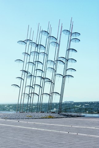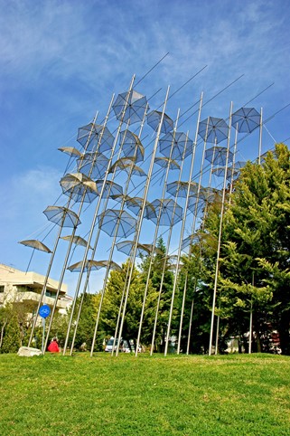 Umbrellas, 1995, stainless steel, height 1300 cm, Thessaloniki Seafront, Thessaloniki, Greece