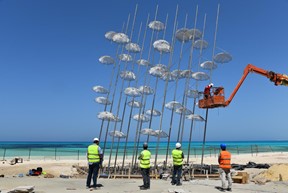 Το Ίδρυμα Γεωργίου Ζογγολόπουλου την Παρασκευή 8 Ιουνίου ολοκλήρωσε με απόλυτη επιτυχία την εγκατάσταση του γλυπτού Ομπρέλες στην Αίγυπτο. Την ομάδα εργασίας αποτελούσαν πέντε άτομα με επικεφαλής τον Πρόεδρο του Ιδρύματος, κ. Νίκο Θεοδωρίδη, τον Γενικό Διευθυντή, κ. Άγγελο Μωρέτη, και τον κατασκευαστή του γλυπτού, κ. Στέλιο Γκίκα, με τους δύο συνεργάτες του κ. Ανδρέα Ευαγγελάτο και κ. Αρθούρο Ρώσση.