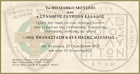 Ομαδική έκθεση "1821. Επανάσταση Κατά Πάσης Δουλείας" στο Πολεμικό Μουσείο23.10.2022